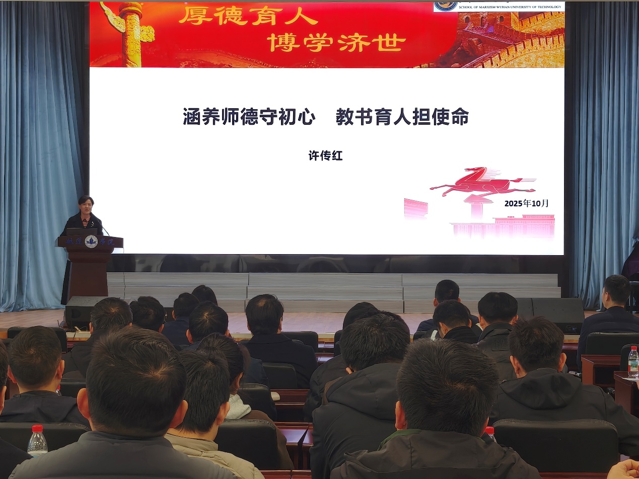 本次讲坛邀请马克思主义学院许传红教授主讲,她以“涵养师德守初心、教书育人担使命”为主题,深入贯彻习近平总书记对教育工作的重要指示精神,对照校党委书记孟芳兵关于弘扬教育家精神的部署要求,结合典型案例系统阐释了教育家精神的六大内涵。讲座感召全体教职工深刻把握教育家精神的时代内涵与实践要求,进一步坚定“为党育人、为国育才”的初心使命,自觉以教育家精神立心铸魂、启智润行,引领职业成长、赋能育人实践。