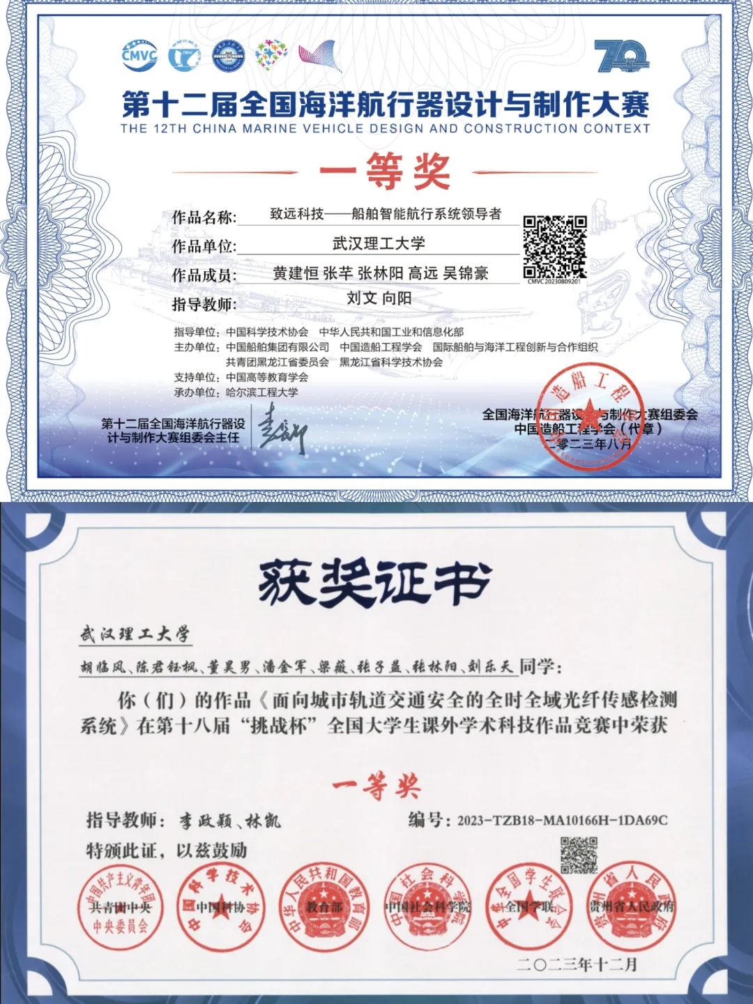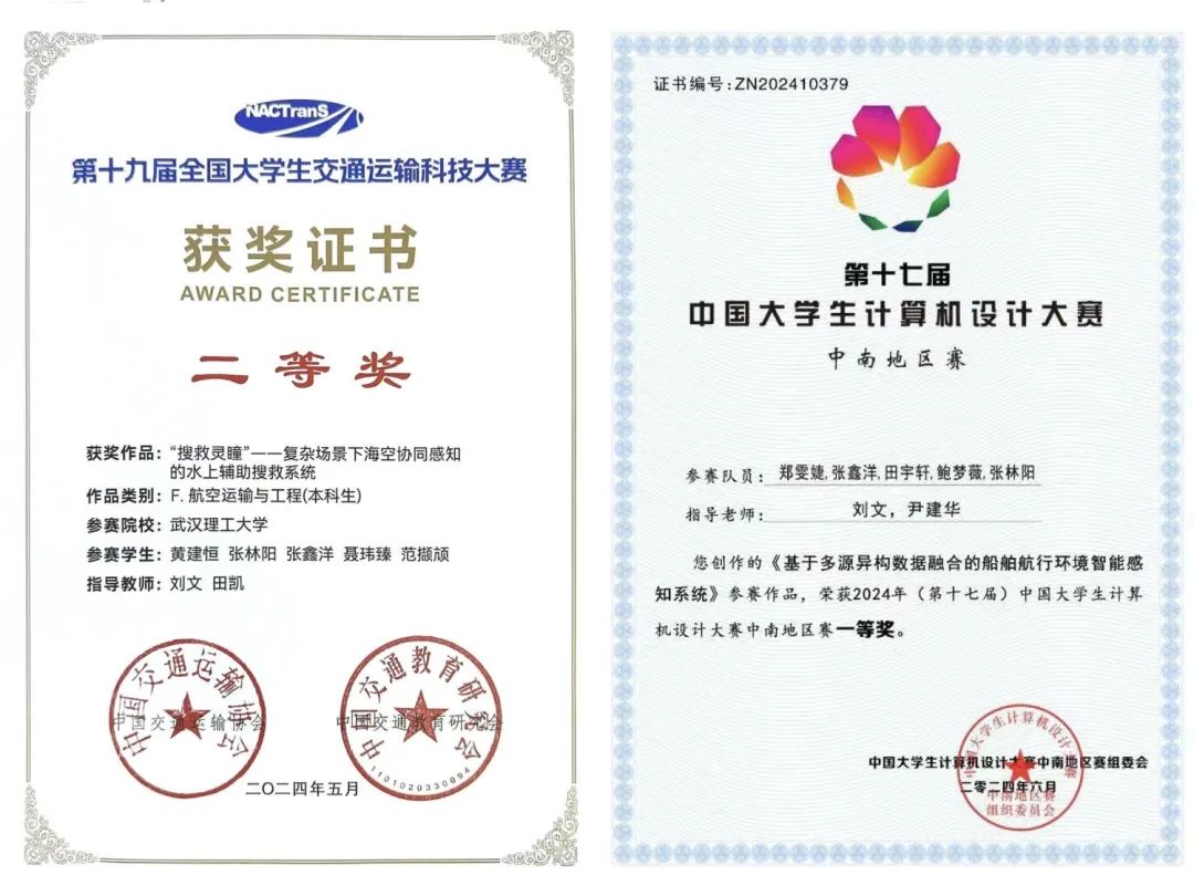 功夫不负有心人,努力的汗水最终换来了丰收的果实,他先后获得了第十八届“挑战杯”全国大学生课外学术科技作品竞赛全国一等奖、第十二届全国海洋航行器设计与制作大赛全国一等奖、第十九届全国大学生交通运输科技大赛全国二等奖、第十七届中国大学生计算机设计大赛中南地区一等奖等多项国家级、省部级奖项。